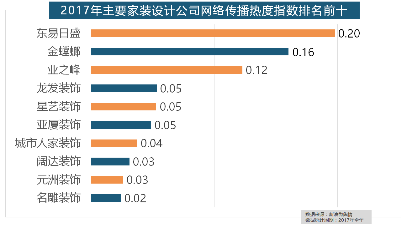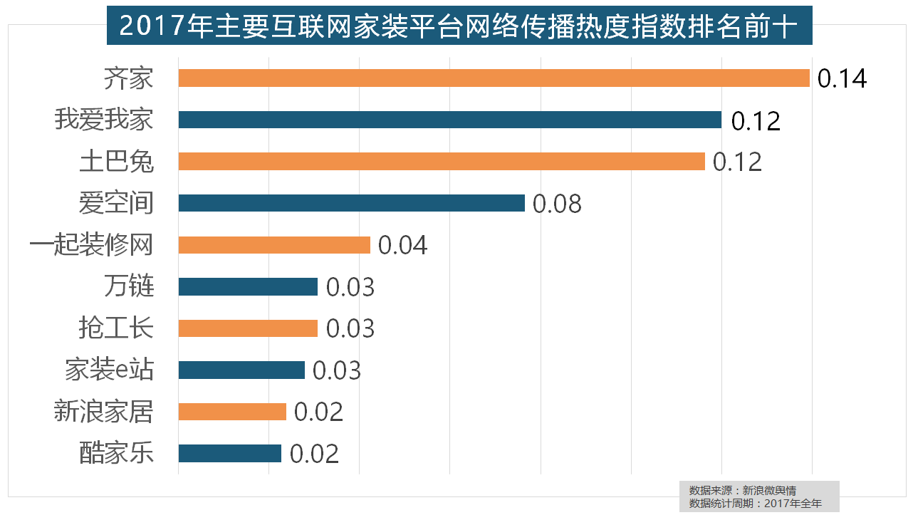 2017年,2017年家拆行业较受关心。据新浪微舆情大数据阐发显示,九牧厨卫、惠达卫浴、科勒卫浴、箭牌卫浴、TOTO卫浴的收集热度指数位列前五,虽然近年来浩繁互联网家拆平台纷纷兴起,